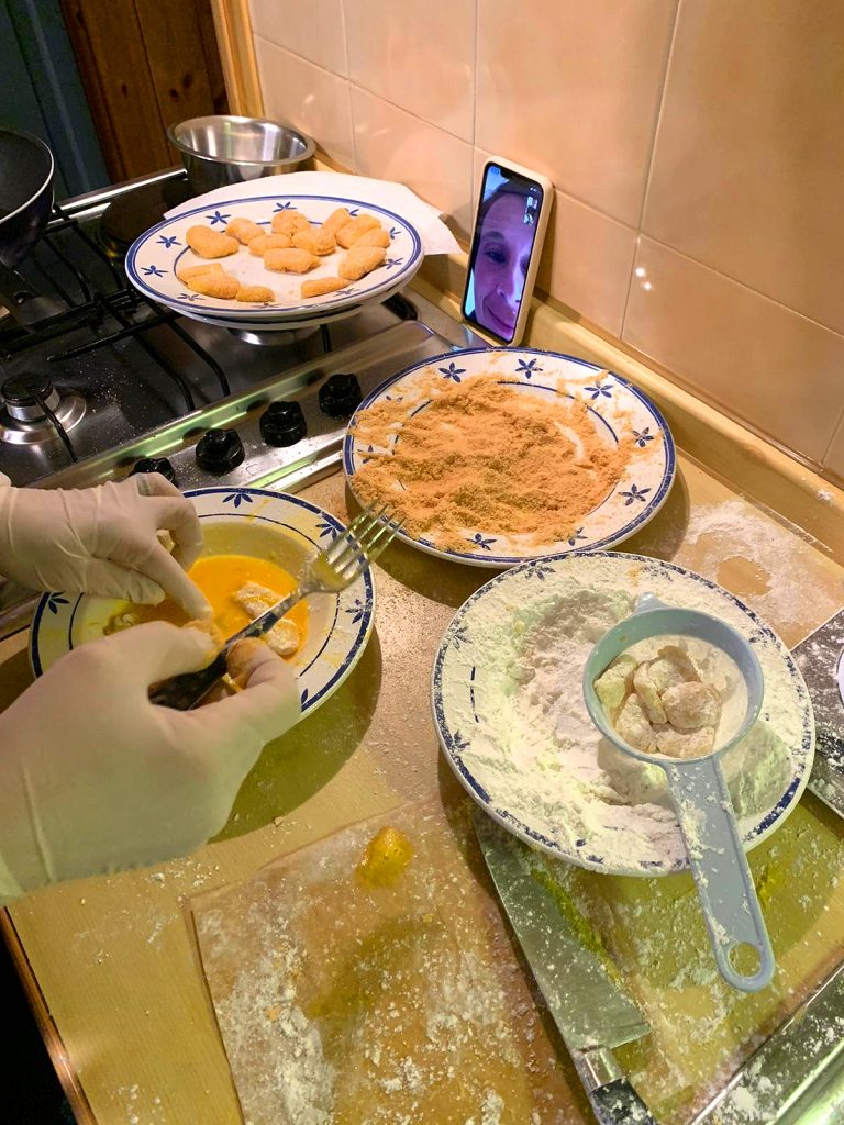 Passate ogni cubetto prima nella farina, poi nell’uovo e infine nel pangrattato.